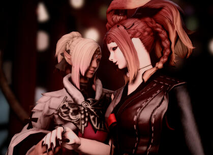 Aumione Roulemet: Following a chance encounter at the Gold Saucer, Shiv and Aumi spent weeks in each other's orbit, drifting closer, teasing and prodding, until finally crashing together. They've been inseparable since.Youko Tanpou: